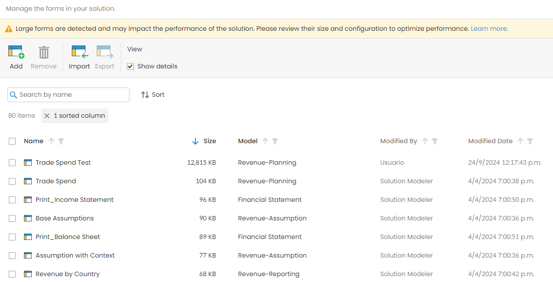 The performance of your forms plays a crucial role in the user experience of your dashboard apps. Slow-loading forms can cause delays and frustration. This article provides best practices and steps to enhance form performance and ensure a smooth user experience. Kepion will notify modelers when a form exceeds 1000 KB in size.